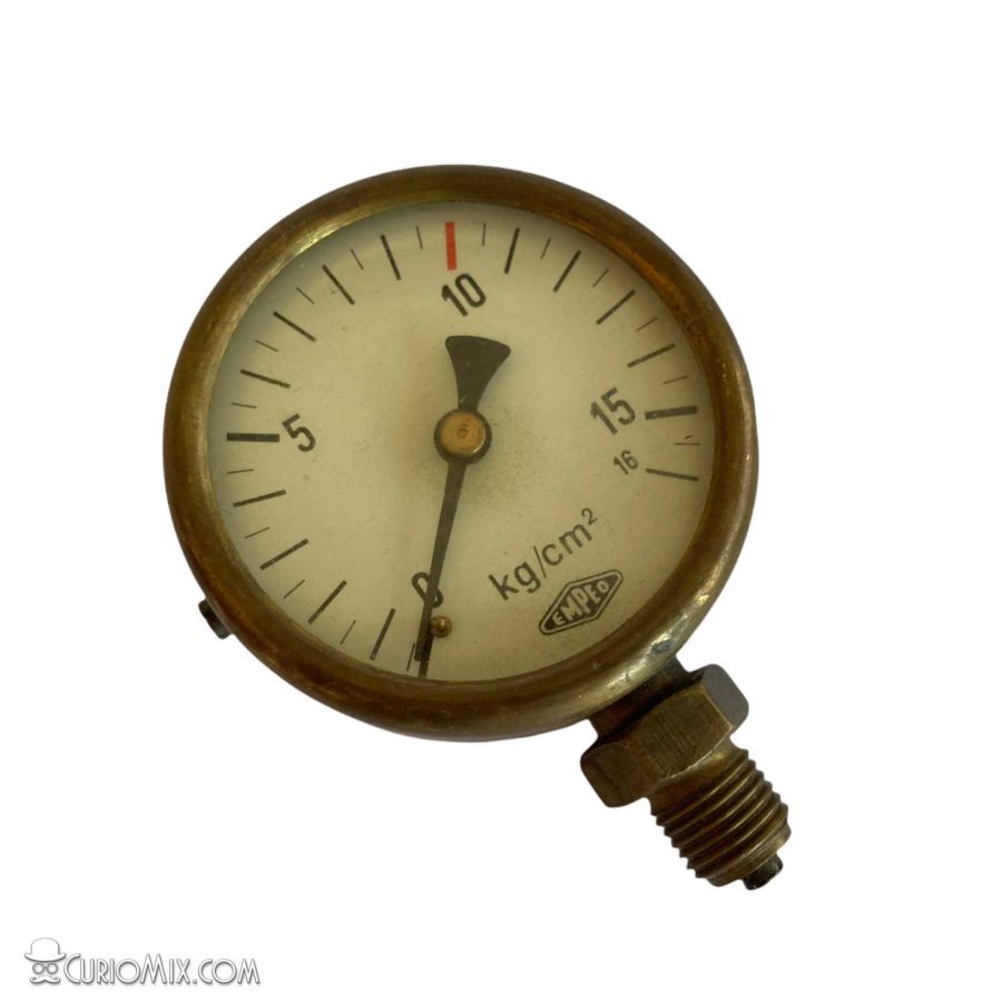 German manufactured Empeo brand brass pressure gauge. Made in Germany and originated from a pre 1930s car. Similar gauges were used on a variety of car brands at the time.