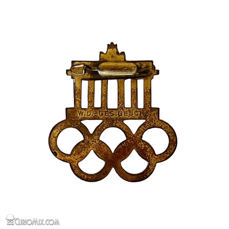 A historical badge issued at the opening of the Berlin Olympics in 1936. Text “1936” and “XI Olympiade Berlin”. Bronze metal with enamel. Horizontal pinback. Good condition.