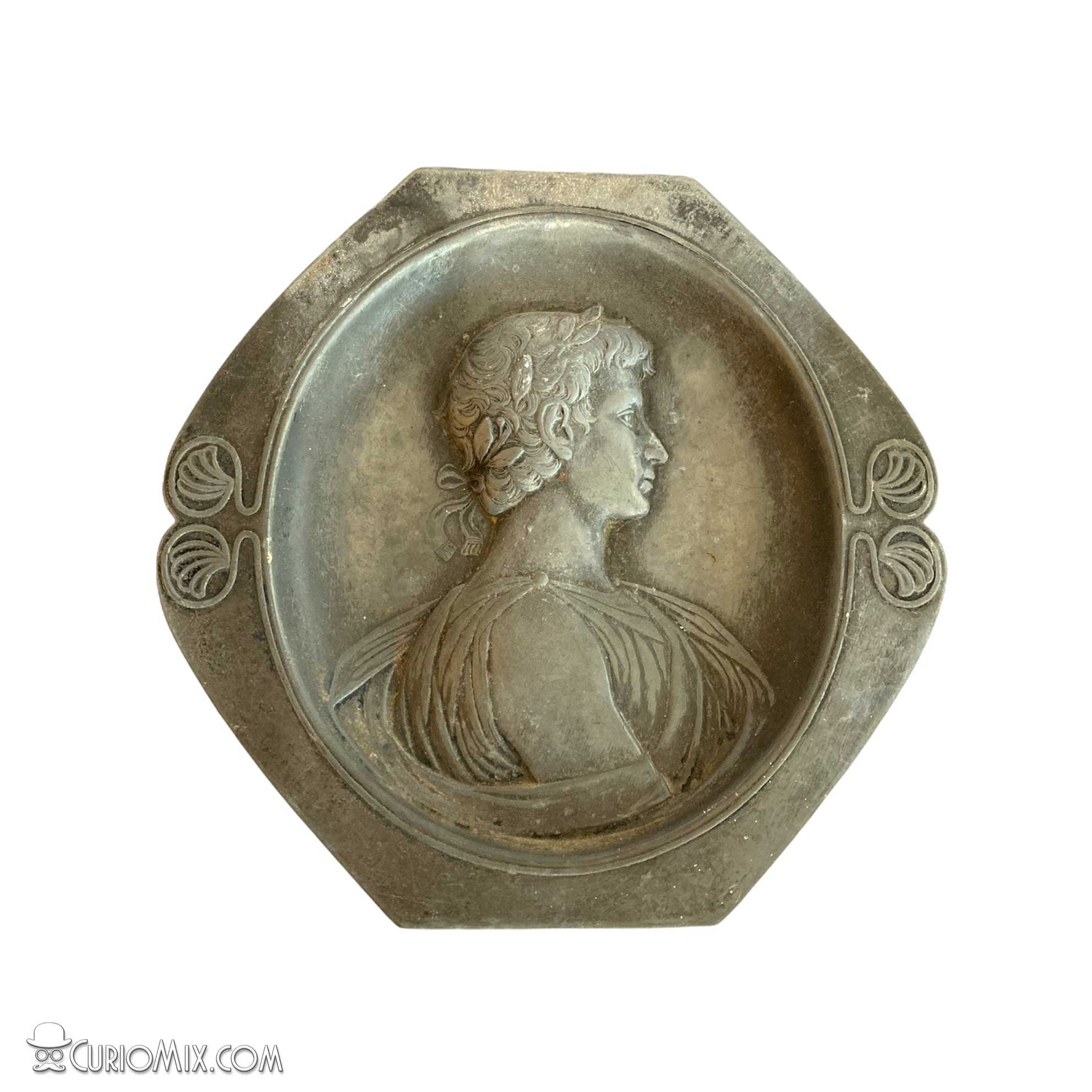 Wall pewter plate / plaque embossed with Roman figure.